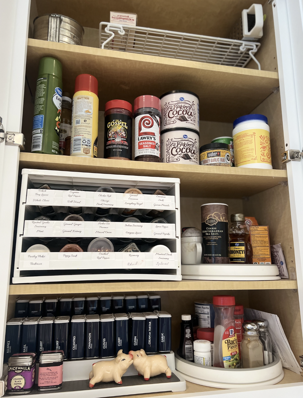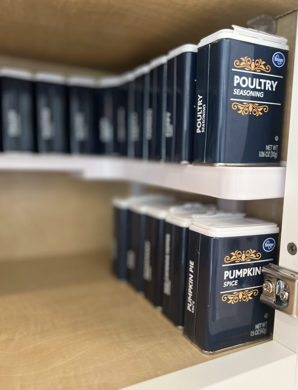 After going through the spices I had in an organizer similar to this one (but a little larger), I realized that I had a ton of duplicate spices and that the container took up a LOT of valuable space. By clearing out the extras I have SO much more space for what we actually use.