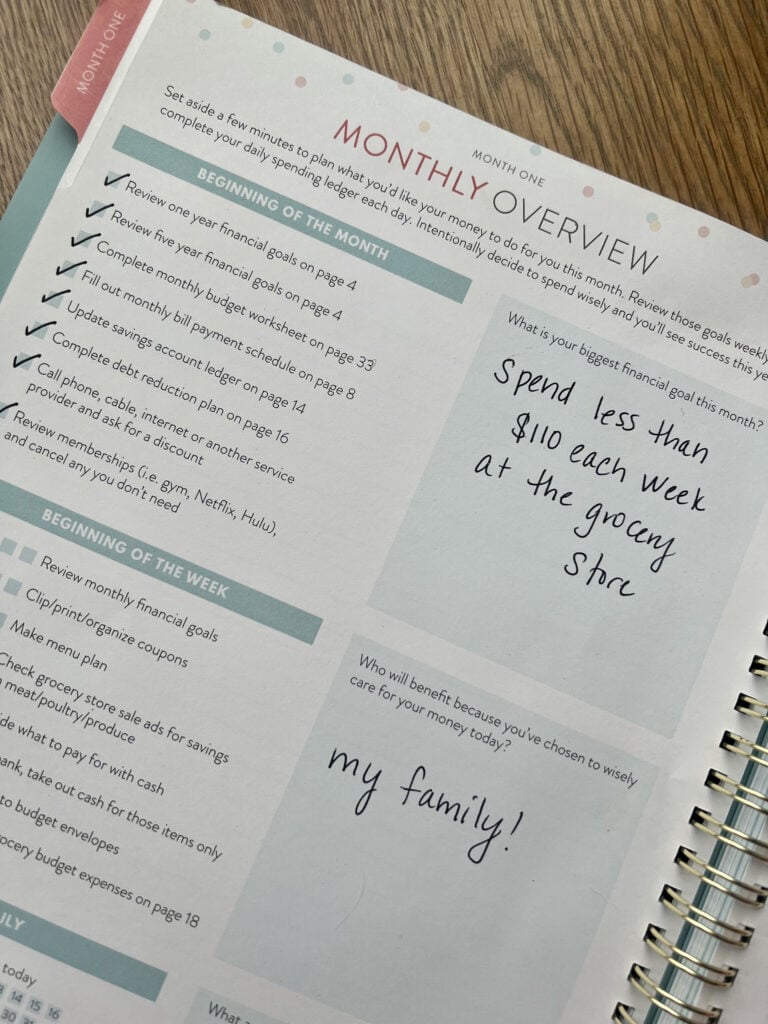 Do you want to save on your grocery bill? Is prom coming up for your high schooler and you want to pay cash for her dress? Would you love to pay extra on a student loan so you’re not saddled with a bill forever that’s ruining your budget? Decide that single financial goal and write it down today.