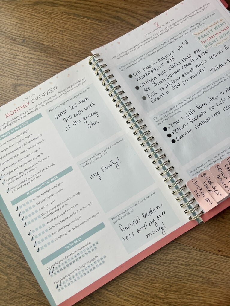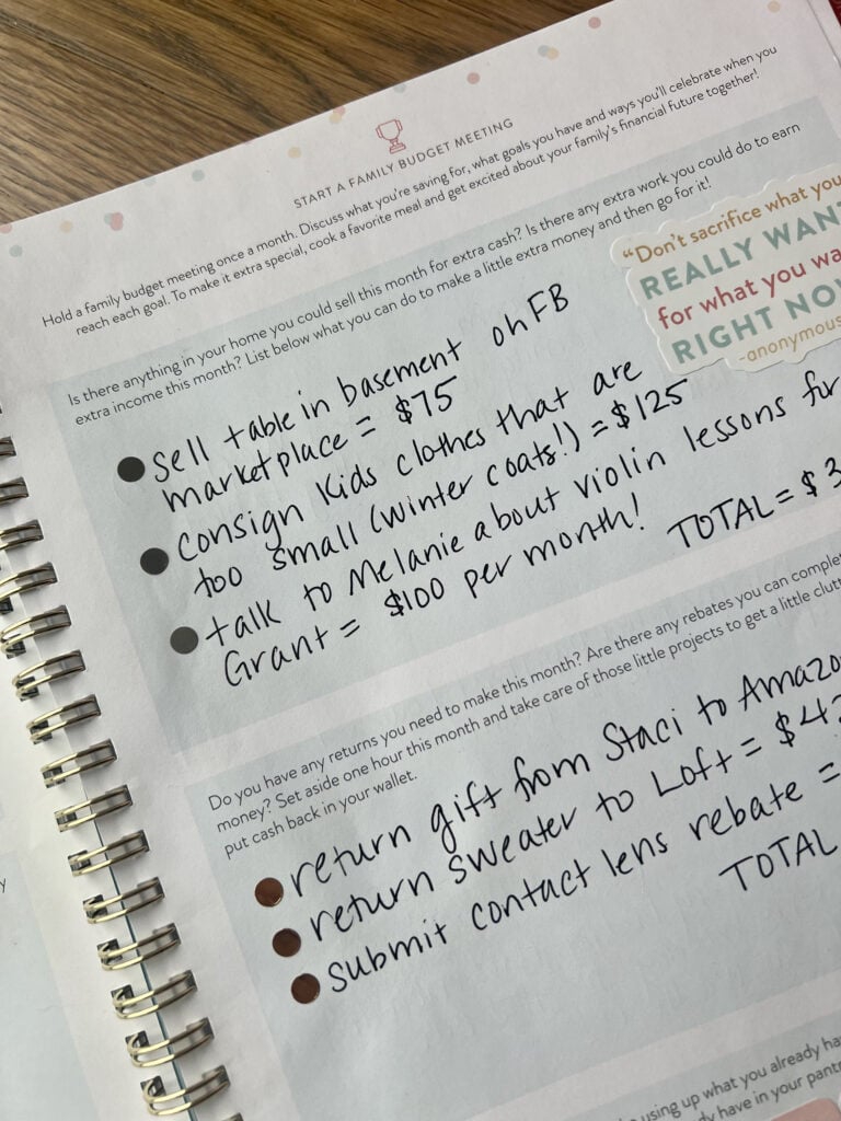 Is there anything in your home that you could sell for extra cash to help you stick to your budget? Are there returns you need to make that might get you a few dollars back in cash? Can you set aside an hour this week and clear out some clutter and then consign a few things at your local consignment shop or even in a local Facebook group? Are there meals you can make using what you already have in your pantry, refrigerator and freezer that will help you stay on track this month? Decide that for the season you’re in right now, instead of spending your time purchasing things, you’re going to spend your time earning things. It’s so very worth it in the long haul and. you’ll never regret your decision to save today!