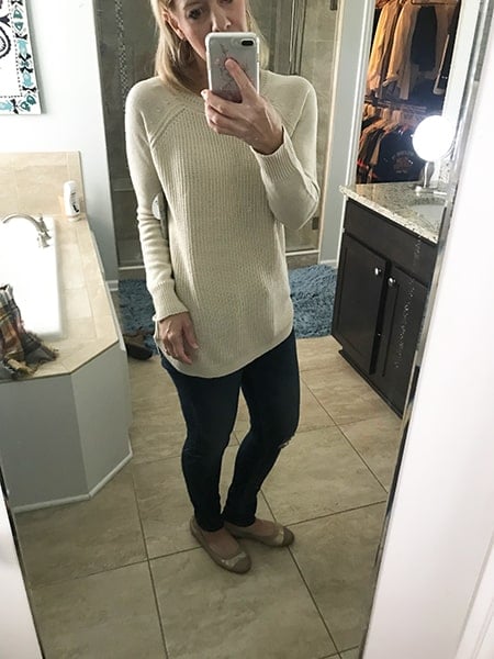 So my plan is to let my girls look it over tonight when they get home (they’d look great in the sweaters I think!) and if they love them I might keep the entire box. If not…. I might send it all back (to pay $126 for just the top and jeans feels way too high to me, and if I’m going to have to go shop anyways I think I might be able to find those for less!)