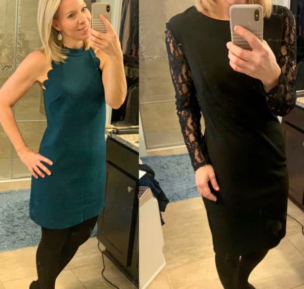 So I let my Stitch Fix stylist know that’s what I needed, and they sent me a few dresses to try as well as a coat to wear to the party too.