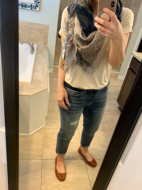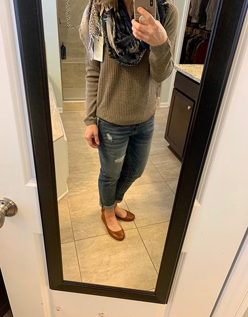 $174 split five ways is $34.80 per item and really not all that awful to have someone shop for me. I normally wouldn’t consider it but I hardly have any more casual (trendy!) things and we’re coming up on soccer and track season for my girls here in Ohio. It would be so nice to have a few things that felt cozy but still cute . . . so I’m considering keeping the box (and would love to hear your thoughts!)