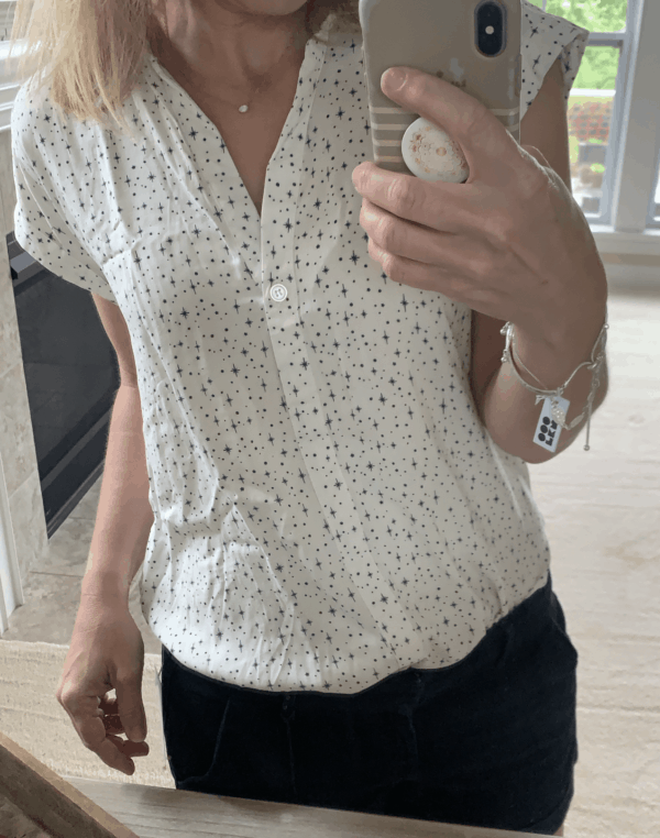 Hayley Button Down Top $68 (if I keep everything in the box, $51) ~ honestly, I LOVE this one because it feels amazing ~ it’s super light weight and just lays well but $51 is a LOT OF MOOLAH for a top for me even after the 25% off. Ugh!