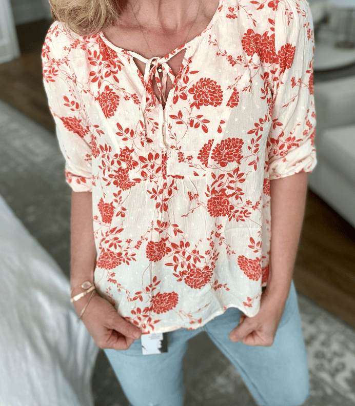- Donelia Tie Front Top $42 (if I keep the whole box $31.50)