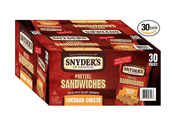 - Start here: Snyder’s of Hanover Cheddar Cheese Pretzel Sandwiches (30 ct)