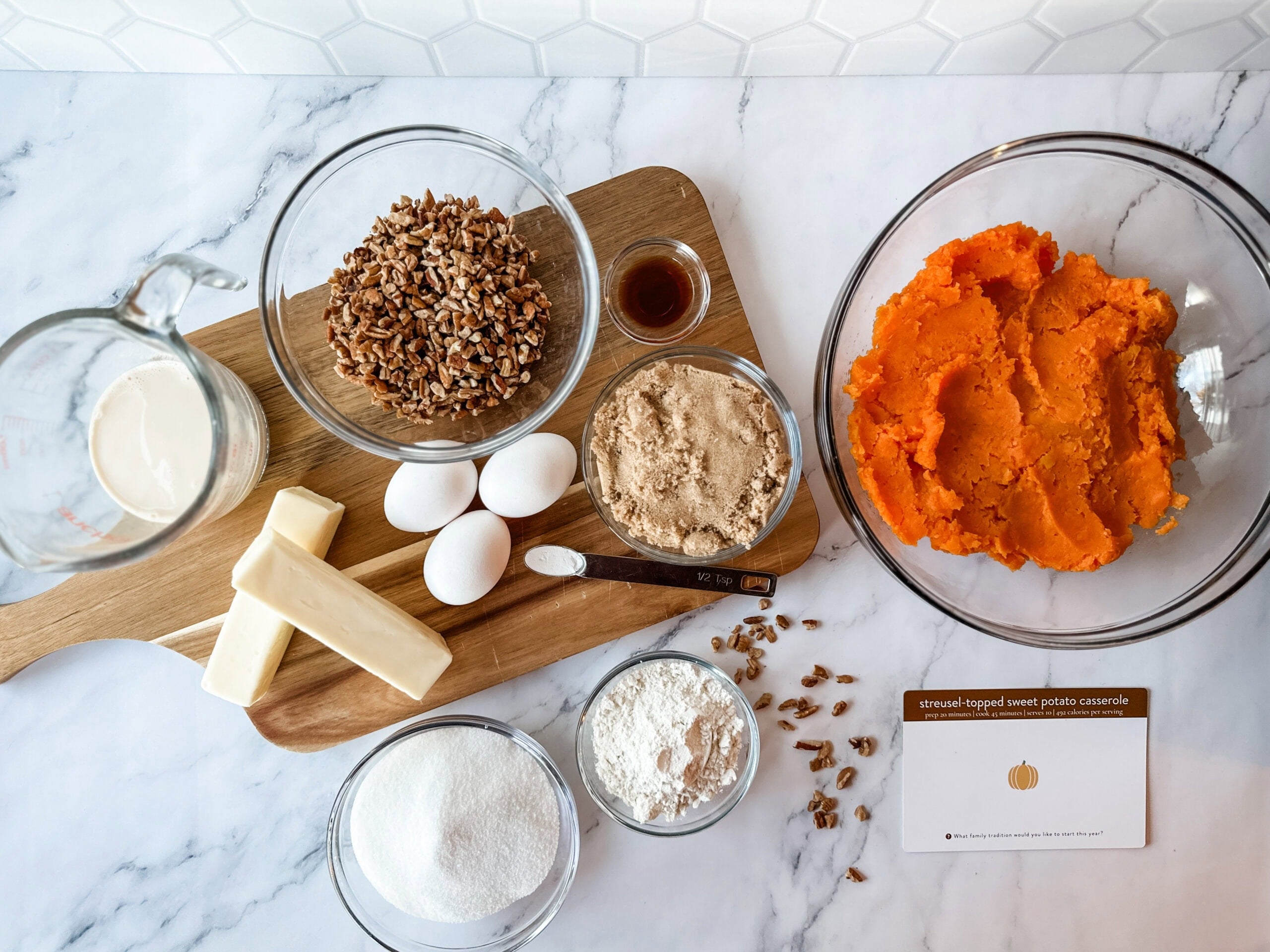 Ingredients for Streusel Topped Sweet Potato Casserole: