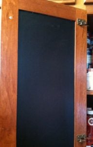 - Chalkboard Contact Paper (I ordered it at Amazon for $6.96, but as Kristen mentioned on the PPP Facebook page, you could also use Gowrite Dry Erase Rolls for just $8.99 if you have chalk allergies or prefer a dry erase board. Note that the amount included in what I ordered would have been just enough to do both sides of my pantry had I measured before I cut . . . so if you’d like to use it in another spot be sure to measure and get just what you need!)