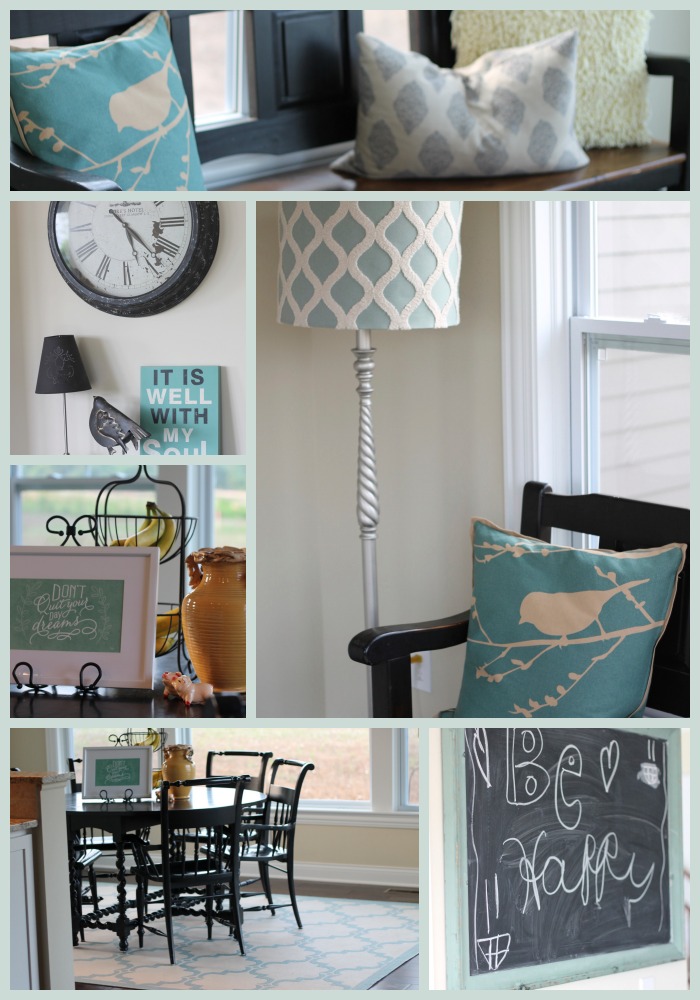 When we moved, I really thought we’d think about getting a new kitchen table and chairs (I love this set that we found on clearance years ago at Lane furniture, but it’s taken a beating from my kids over the years!) However, once we moved in and set the room up, I decided that for now the kitchen table is just fine, we just needed to change out the rug and a few of the decorating items around it.