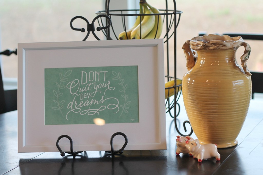 Hobby Lobby had this print on sale for $14 – perfect, don’t you think? The piggy salt & pepper shakers are my daughters’ – the girl loves her pigs and I think they’re pretty cute. 😉