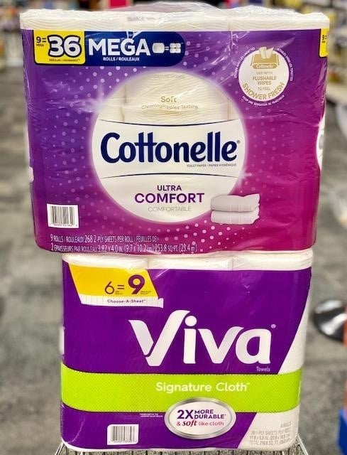 Buy 2 Cottonelle Toilet Paper, 9 Mega Rolls or Viva Paper Towels, 6 Rolls – $10.49
