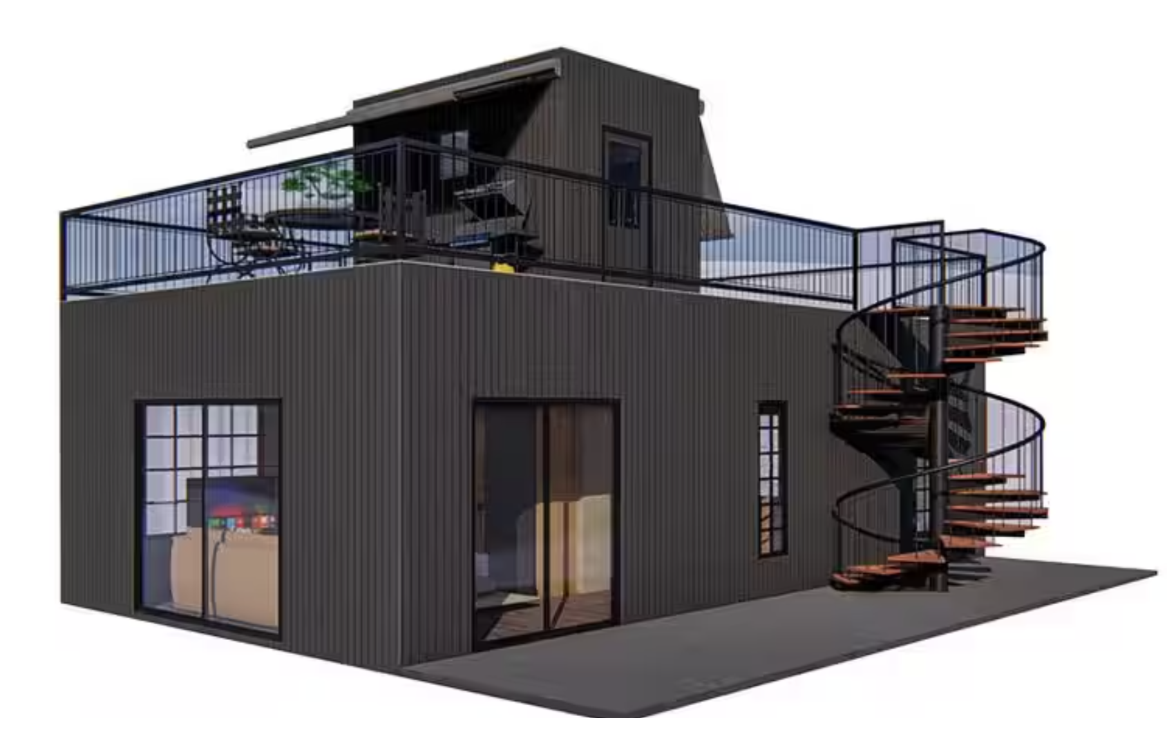 - Two Levels (Spiral staircase not included but is sold at Home Depot)