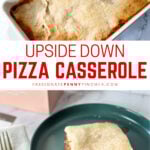 This upside down pizza casserole is packed full of your favorite meaty pizza flavors – but with a fun twist!