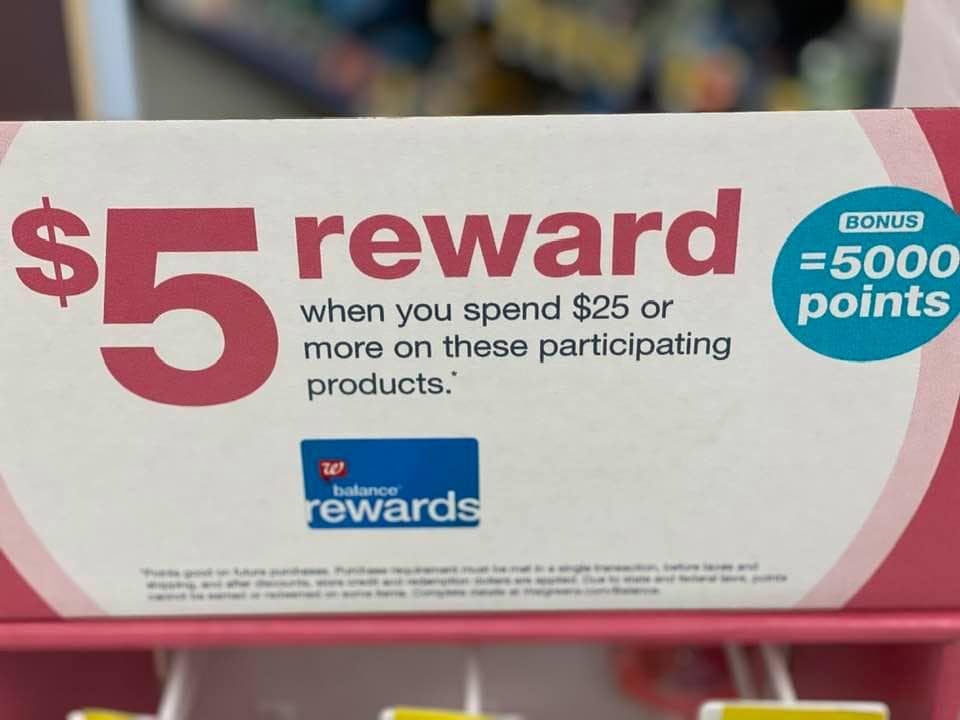 Balance Rewards are tied to your phone number/Walgreens account, and you’ll earn points when you purchase specific items each week. Balance Rewards range in value from 500 points to 50,000 points. Here’s what they’re worth:
