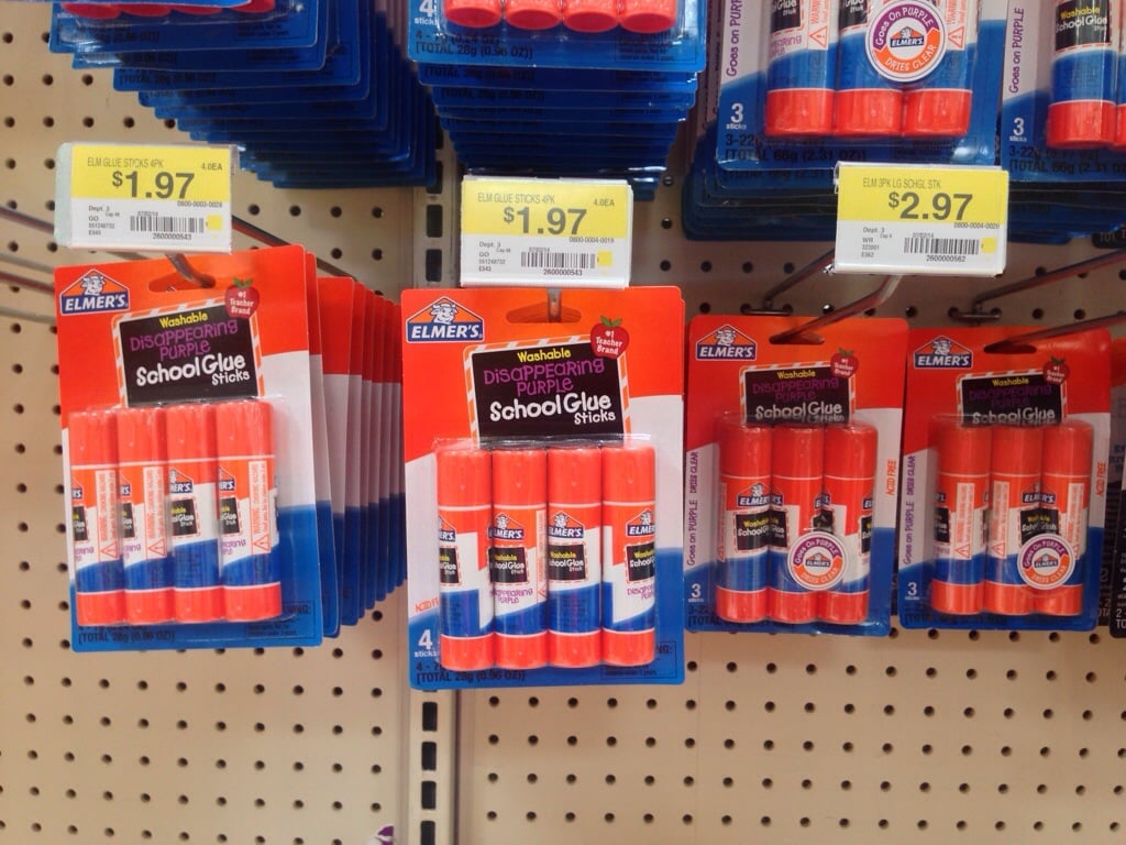 I went tonight , and they have Elmer's glue sticks 2-pack for .50 cents . Buy two and save .97 from the 4 pack 😉