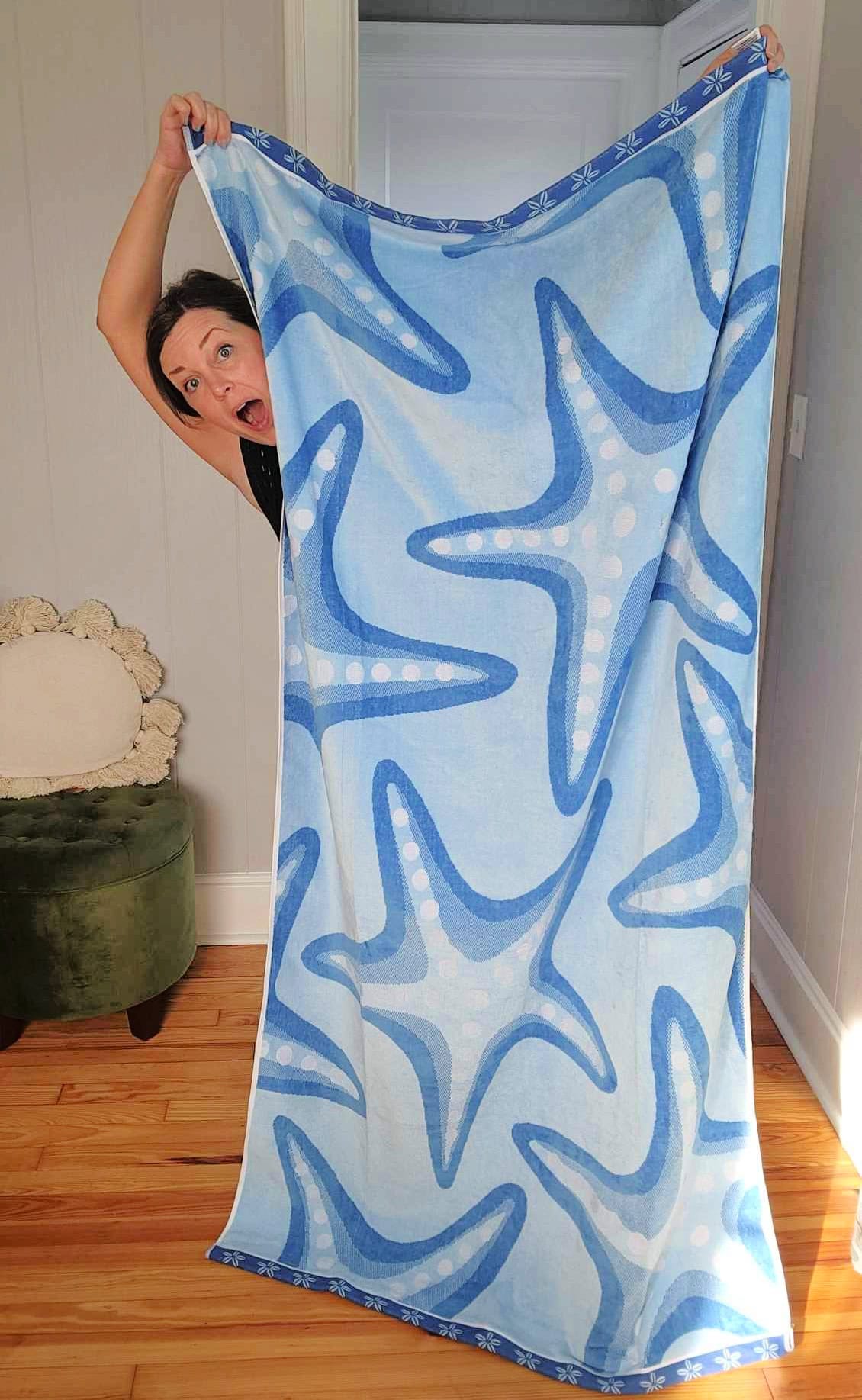 These towels are super fuzzy growing through the dryer the first time, but after that the size is amazing, they’re super fuzzy and soft, and the best beach towels you’ll ever find especially when compared to more expensive LLBean and Land’s End Brands priced at $40 (!!!) each!