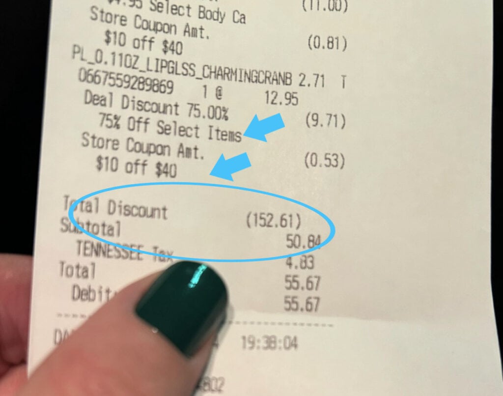 As you can see from Bridgett’s receipt, you can absolutely stack the $10 off $40 coupon with the 75% OFF deals! 🙂
