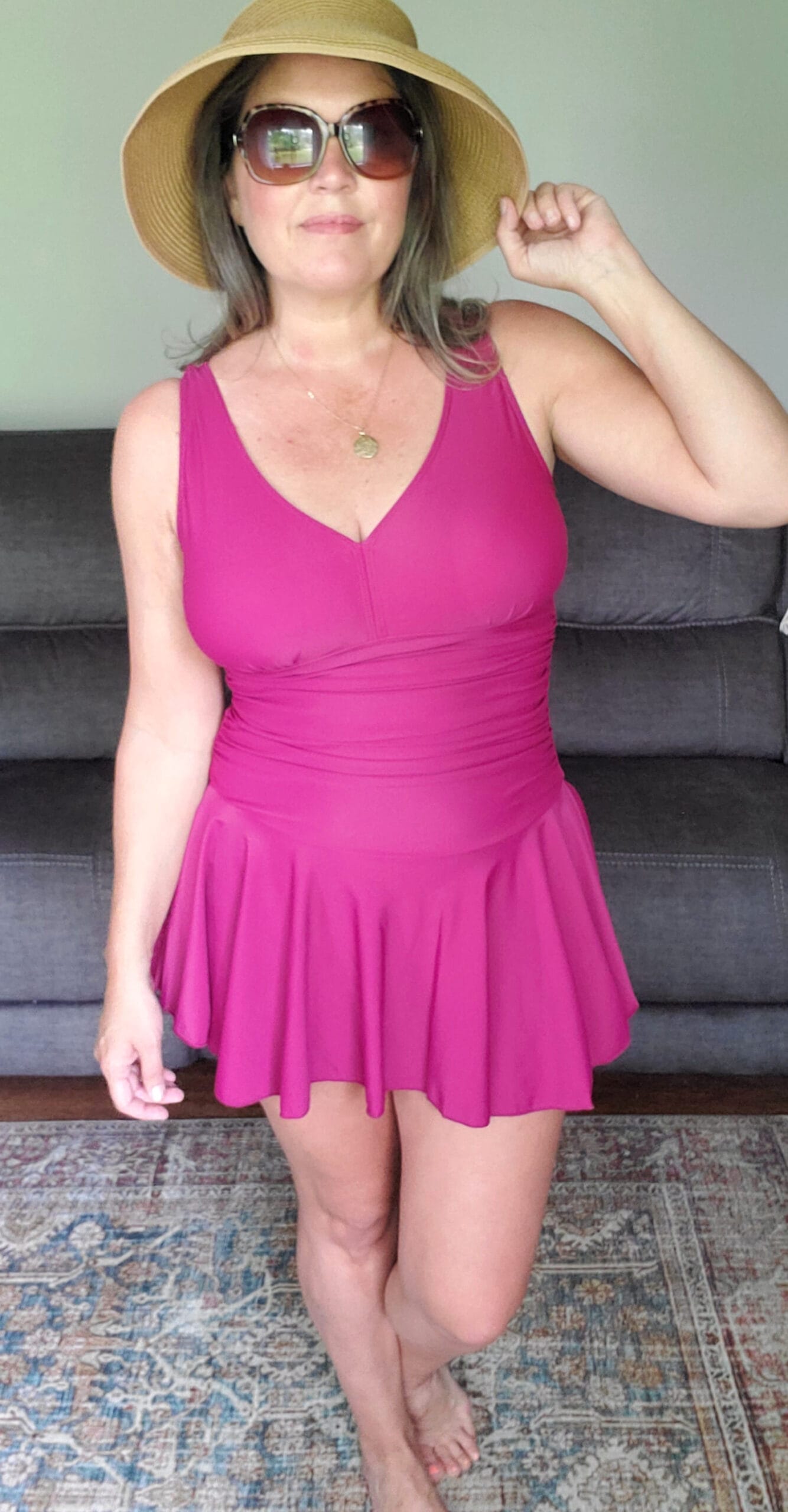This bathing suit made me feel self-conscious and like everything was squished and pushed. I ordered a Medium like I did in the other swimdresses but maybe it would’ve fit better if I’d ordered a Large.
