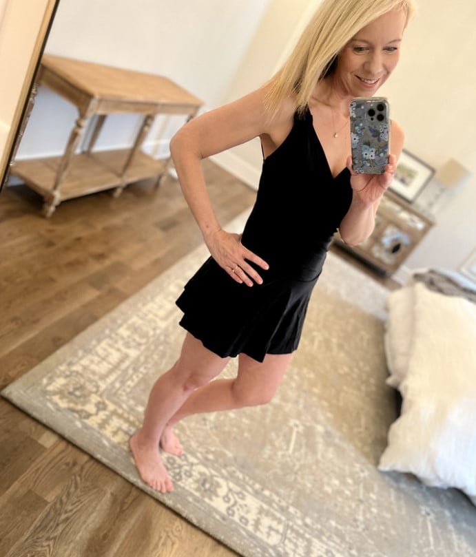 PPP Team Member Mary snagged this one last summer and it’s now on sale for just $30! She says it’s fun for a resort or a cruise because it’s flirty while still being modest. The crossover detail up top draws the eye upward and you can add a little skirt or wrap for more coverage on the bottom.