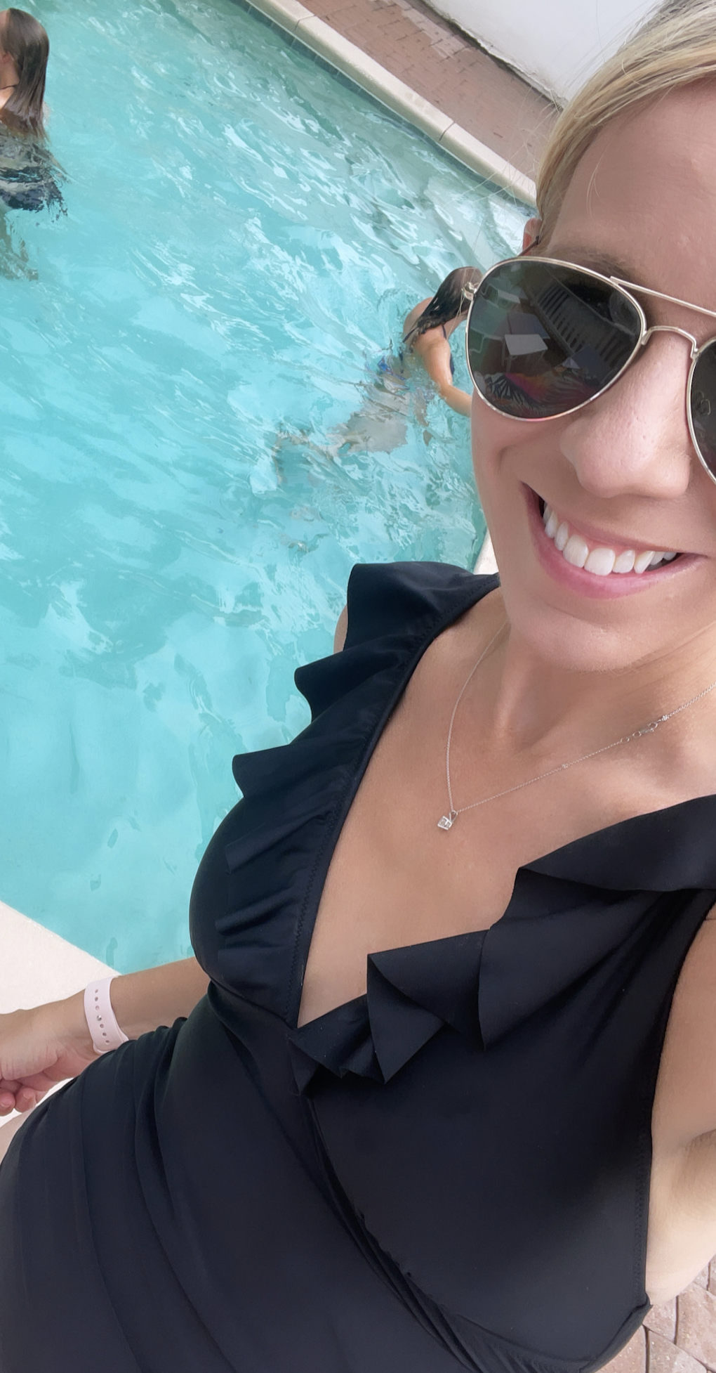This swimsuit is very supportive – and as long as I have my swimskirt on I’d feel comfortable running around after kids and being active at the beach or pool with it on.