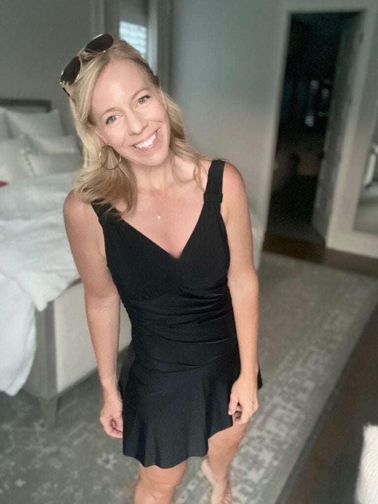 And just in case you’re curious, I’m still a pretty big fan of this classic black bathing suit with a skirt. :) So if you want one that just feels comfortable to walk around in and not too showy, this is the one for you!