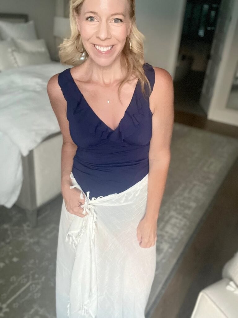 TIP: I love love love this white bathing suit coverup! And, for the record, I took these pics late one evening because I knew they needed to get done ~ but they’re definitely kind of grainy as it was getting darker outside. I’m pretty much the worst influencer on the planet 😉 but I know how hard it is to find a great bathing suit on Amazon, so hopefully this helps!