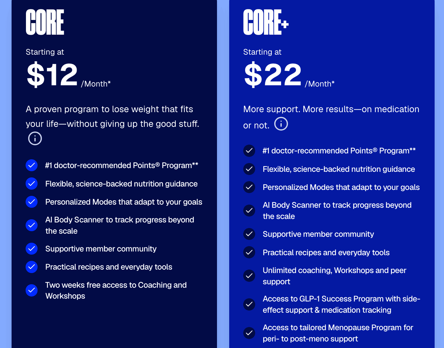 WW now also offers medical weight loss support through its GLP-1 Success Program (CORE+), which includes access to virtual clinicians, expert coaching, medication tracking, and side-effect management for eligible members. If that’s the plan for you, you can sign up for just $22/month (regularly $44).