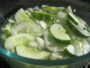 A friend recently brought me a bunch of cucumbers, and while I hate throwing food away I was tempted to because I don’t really like cucumbers all that much! Until my wonderful sister-in-law brought this to our 4th of July feast!