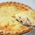 Preheat oven to 375°F. Sprinkle cheese and bacon in the pie shell.