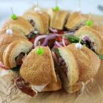 Remove dough from both cans but do not unroll. Place both pieces of dough in pan in a circle; pinch ends together to seal into 1 ring.