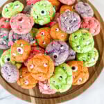 Add candy eyeballs after baking, while cookies are warm.