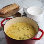 Stir in broth, half-and-half, mustard, sugar, hot sauce, paprika, and turmeric. Turn heat to medium-high.