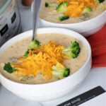 Cook mixture until it begins to thicken, then pour into slow cooker with chicken broth, broccoli & thyme.