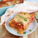 Then layer another 4 uncooked sheets, 1/3 ricotta, and 1 1/2 cup sauce.