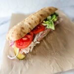 When ready to serve, slice sandwich while still wrapped in the paper. Serve immediately.