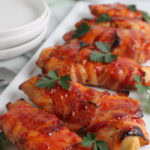 Combine pepper jelly and mustard-reserve ½ cup. Brush remaining jelly mixture over chicken. Bake 15-25 minutes until bacon is crisp and chicken reaches internal temperature of 165°F.